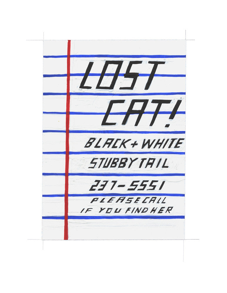 When I lived in Portland Oregon I became a real life "Homeward Bound" for cats. During my time there I was an avid collector of Lost Cat signs. Apparently this stubby tailed black cat got wind of my hobby and showed up on my porch looking for some help. Turned out to be a neighbor's cat a couple blocks away. She was ecstatic when she got the call! Loved how she made the sign on lined notebook paper!
